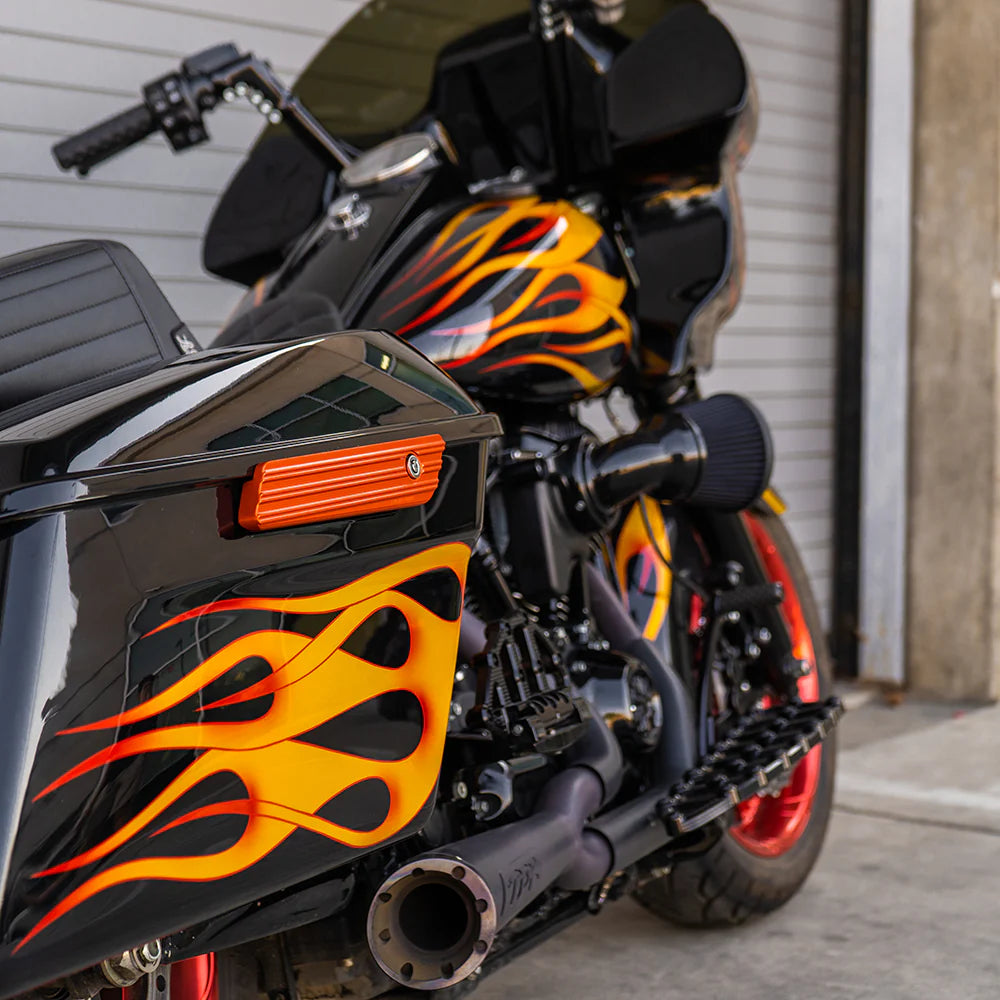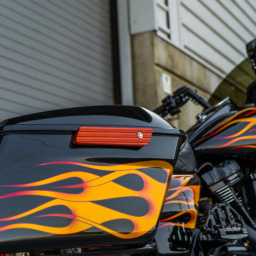 Add a bold accent to your Harley-Davidson® Touring bike with the Arlen Ness 10-Gauge Saddlebag Latch Covers in a striking orange anodized finish. Designed to replace your factory hinge covers with precision-machined billet aluminum pieces, these latch covers deliver the perfect mix of performance, durability, and head-turning style.