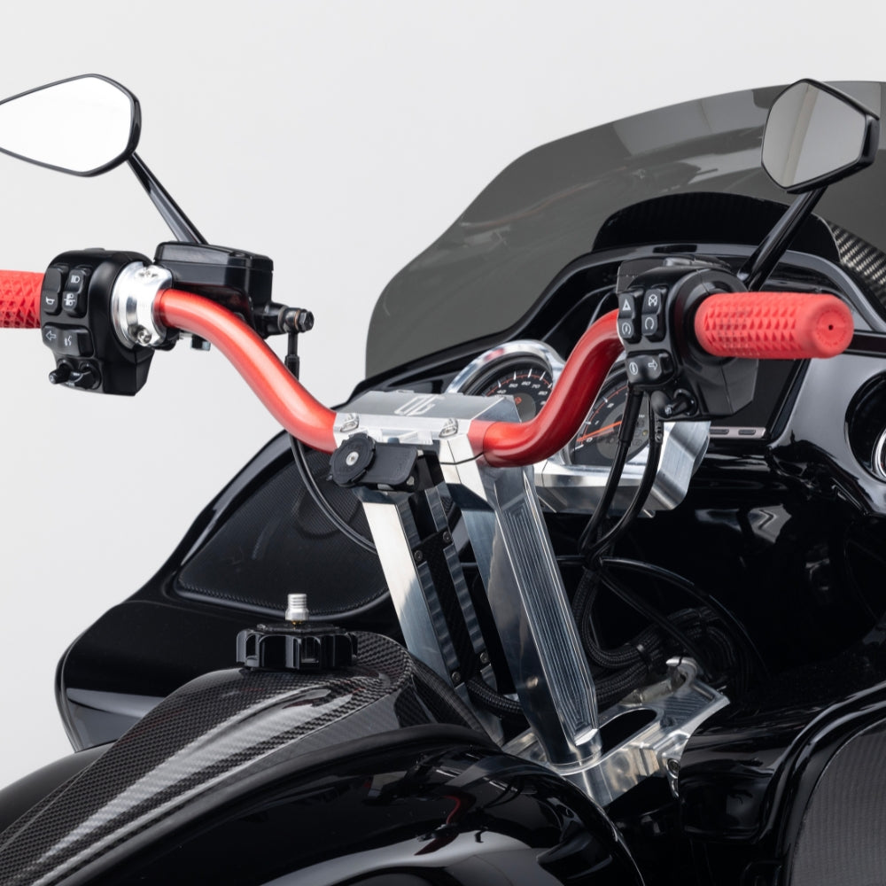Our modular Risers feature a 3 pieces design that allow rider to choose from a pull back or straight riser and 3 different rise height. It also features inner grooves machined from the clamping area down into the risers using included CNC machined aluminium small covers to hide the control wires inside for a cleaner installation. Multiple colors available.