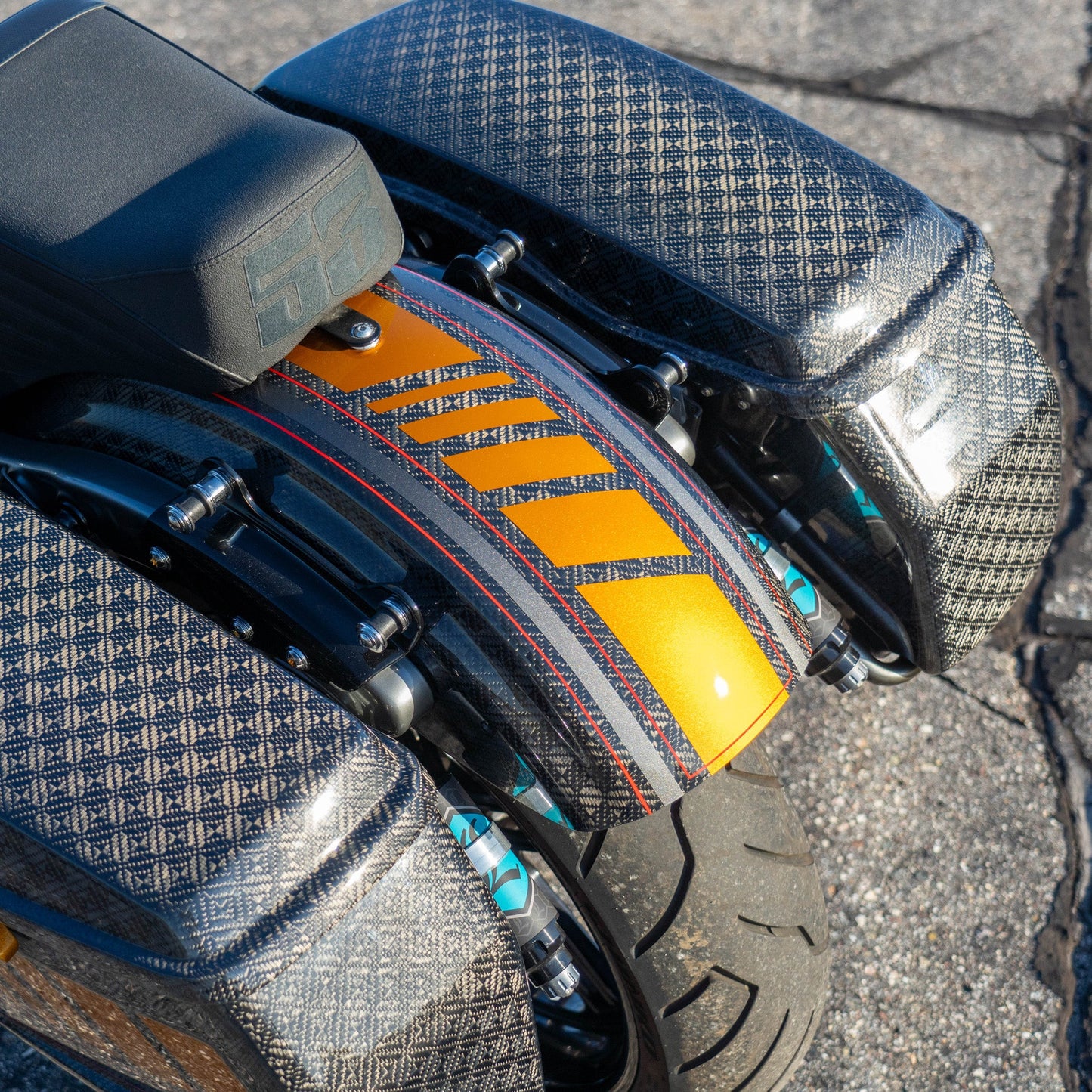 Introducing the Chopped Carbon Fiber Rear Fender for 2009 and later Touring model Harley Davidson motorcycles, designed to provide a sleek custom look with the benefits of OEM fitment, enhanced durability, and included seat docking kit.