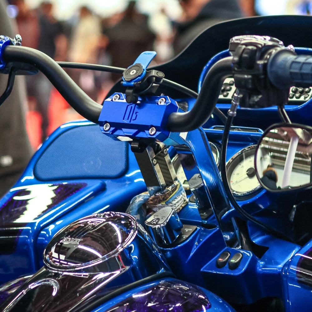 Our modular Risers feature a 3 pieces design that allow you to choose from a pull back or straight riser and 3 different rise height. It also features inner grooves machined from the clamping area down into the risers using included CNC machined aluminum small covers to hide the control wires inside for a cleaner installation.