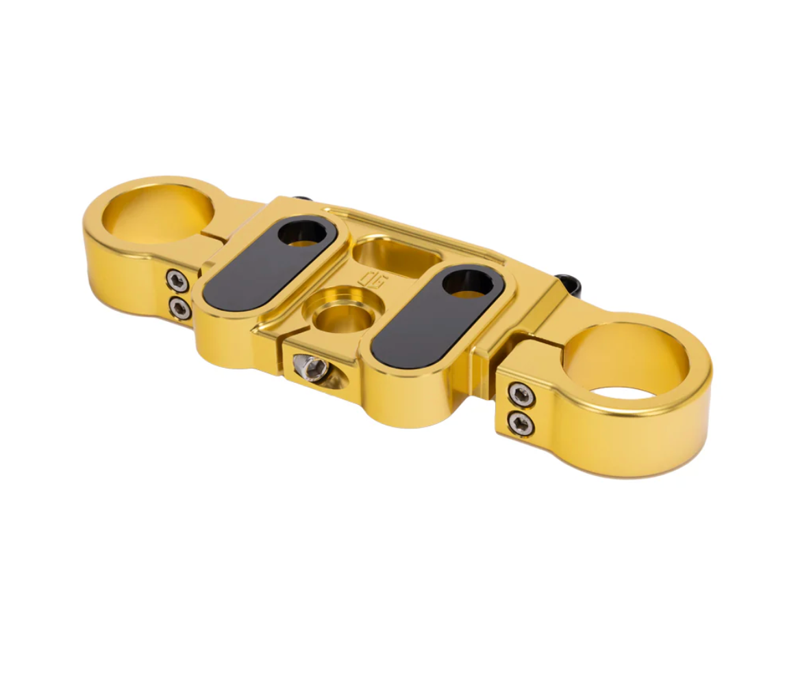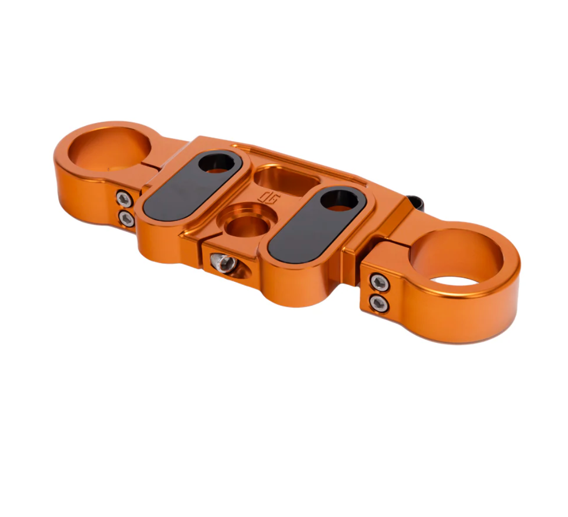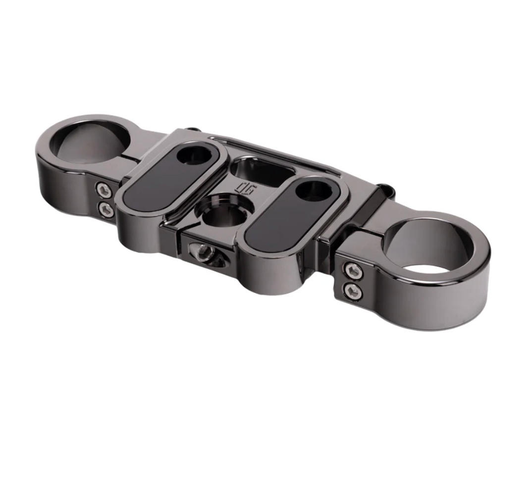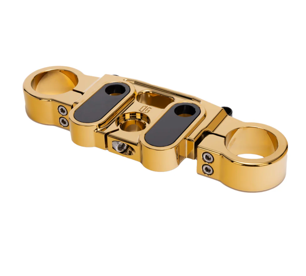 Our OG Top Triple Tree for Harley-Davidson Softail Lowrider S & ST models will allow you to set your Risers exactly where you want them with three mounting location options; Stock, +1'' & +2'' pullback towards the rider (+1” Adapters are sold separately). It uses OEM M8 Softail bushings (sold separately) so you can run solid or polyurethane bushings options. Available in all colors including chrome finishes.