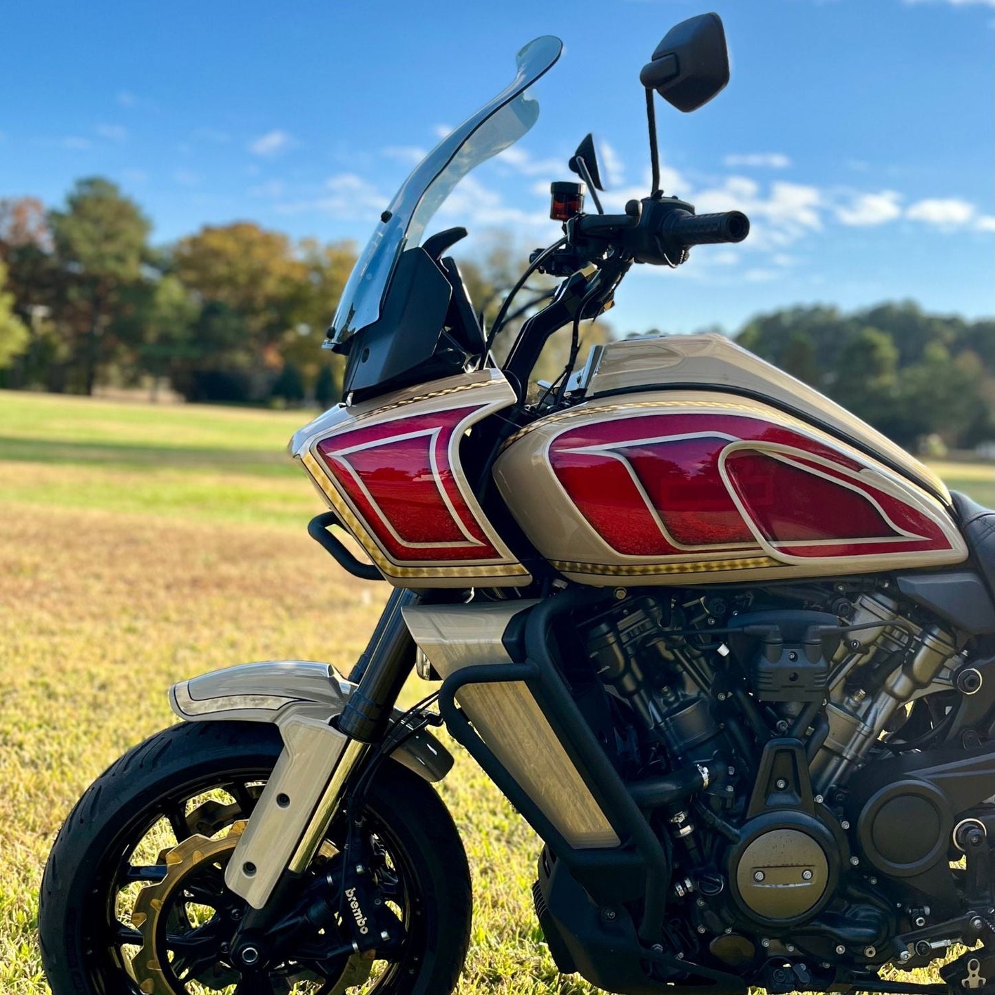 *At full steer, the optional OEM handguards may come in contact with the windshield while using our risers and recommended bar.
