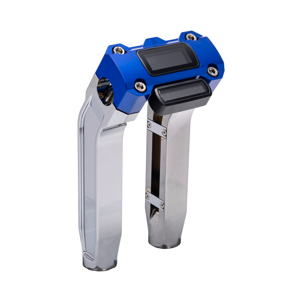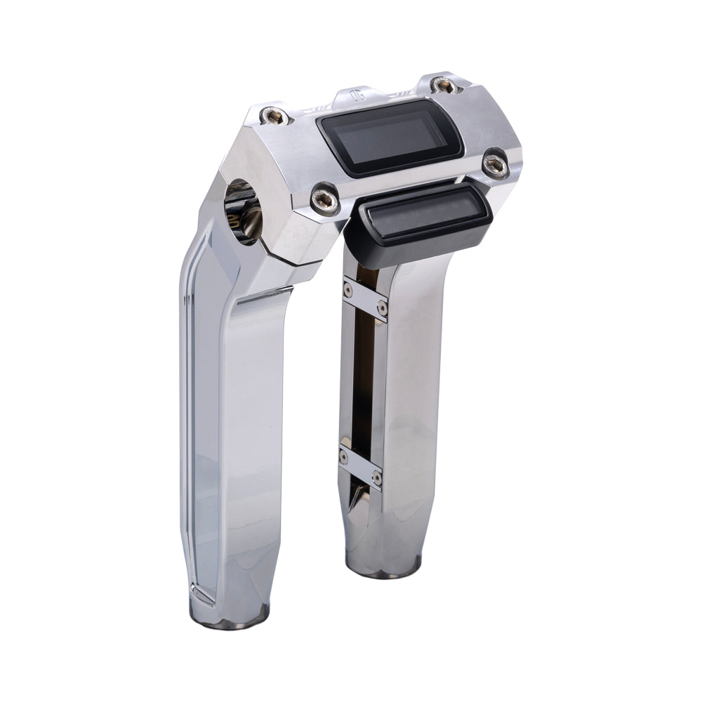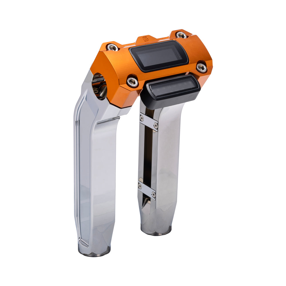 Our modular Risers feature a 3 pieces design that allow rider to choose from a pull back or straight riser and 3 different rise height. It also features inner grooves machined from the clamping area down into the risers using included CNC machined aluminum small covers to hide the control wires inside for a cleaner installation.