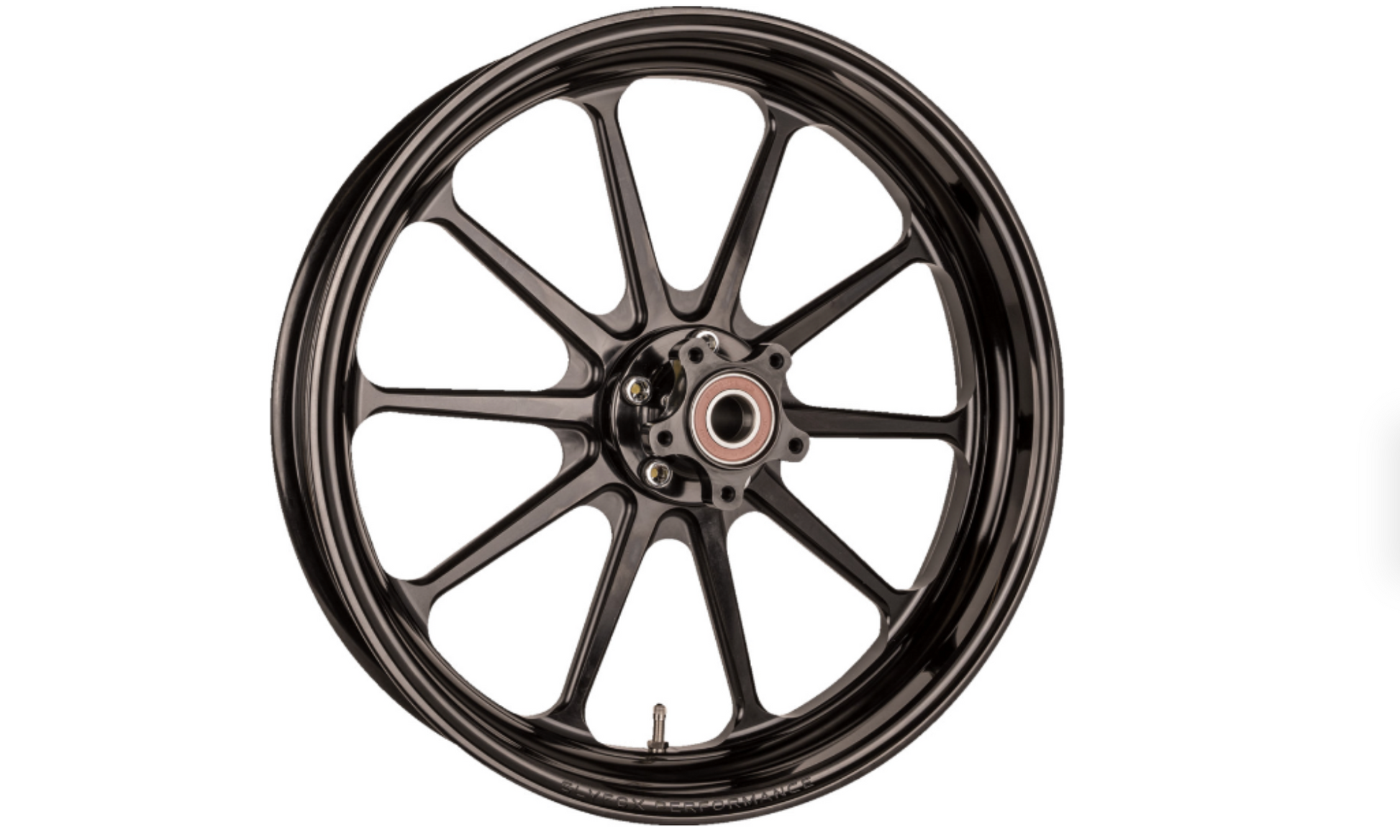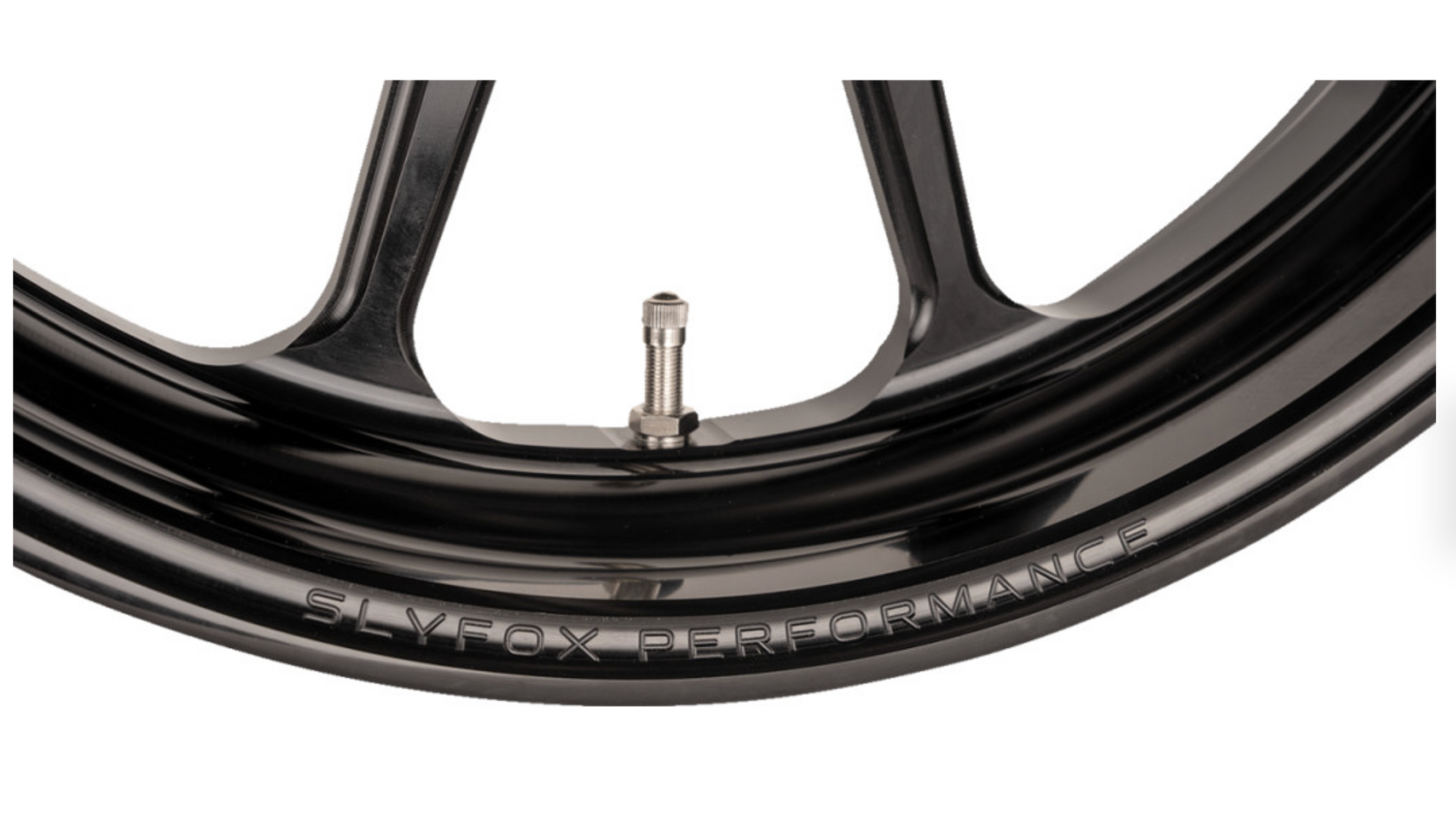 The SlyFox Track Pro 21x3.5 Front Wheel delivers race-inspired performance and precision for Harley-Davidson baggers. CNC machined from forged aluminum, this lightweight 10-spoke design features a back-cut rim lip for strength without the extra weight. Each wheel includes lightweight machined hubs and is finished in durable black anodizing. Designed and made in the USA for riders who demand performance and style.
