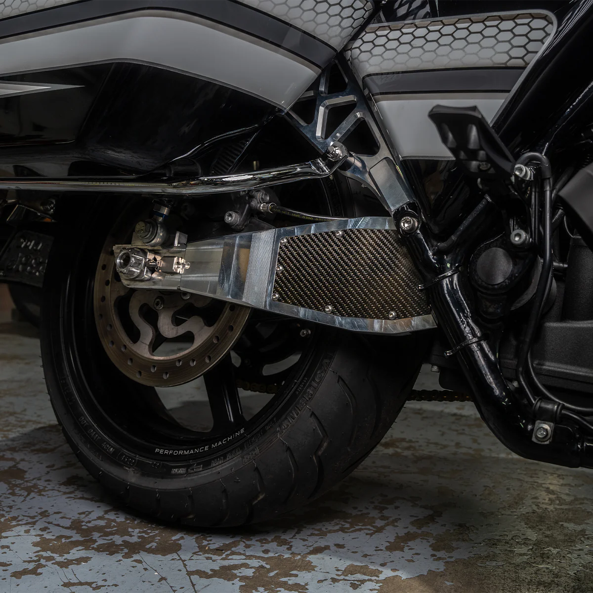 Upgrade your Harley-Davidson touring model with the Trask Billet Aluminum Swingarm and experience race-inspired technology that will take your bagger build to the next level. Whether you're on the street or the track, this swingarm is engineered for unmatched performance, trusted by champions, and designed to give you the competitive edge.