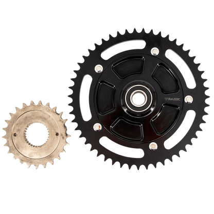 Crafted from lightweight yet strong 6061 billet aluminum, the conversion kit offers unbeatable strength and reliability. The heat-treated, coated steel sprockets are built for longevity, standing up to the tough demands of high-performance riding. With options for a stock 51-tooth gear ratio or a more aggressive 54-tooth drive, you can customize your setup to perfectly suit your riding style.